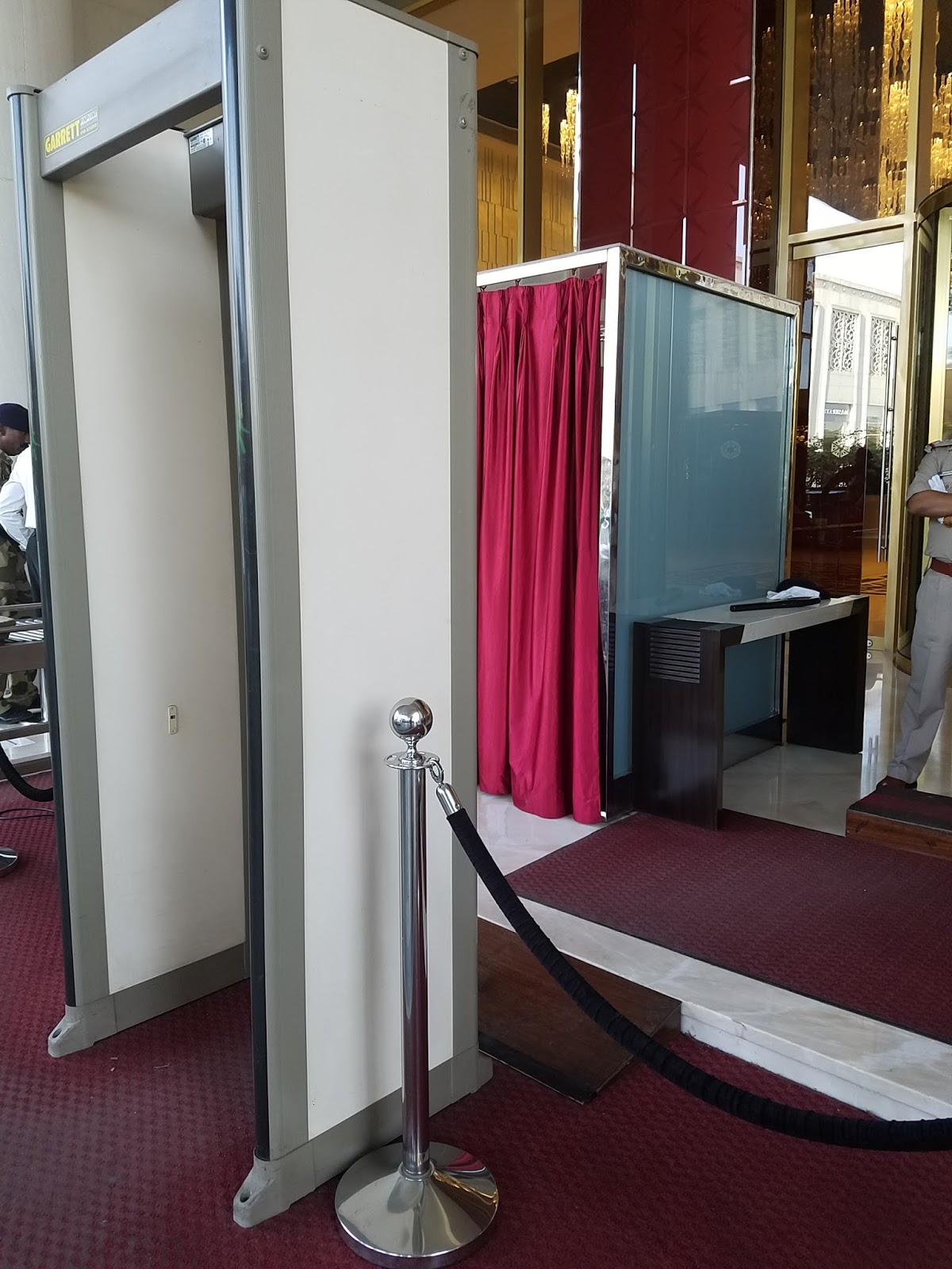 inspected two times on the way to my hotel, The Grand Hyatt. Everyone had to go through metal detectors